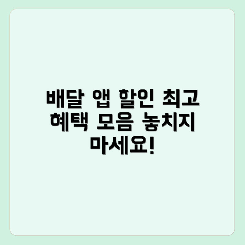 Q: 배달 앱에서 할인 혜택을 받으려면 어떻게 해야 하나요?A: 할인 혜택을 받기 위해서는 해당 앱에 가입하고, 제공되는 할인 쿠폰이나 카드 정보를 확인한 후, 주문할 때 적용하면 됩니다. 일부 경우에는 최소 주문 금액이 있을 수 있으니 확인이 필요합니다.